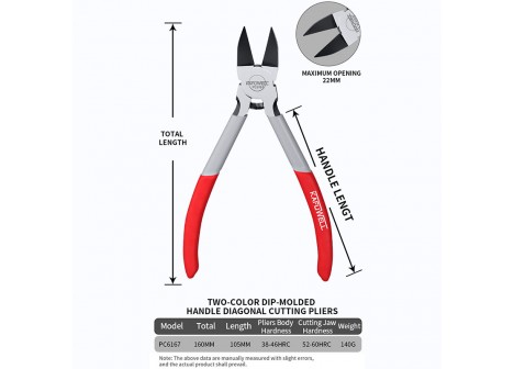 KAFUWELL Double-color Immersion Plated Handle Water Pipe Pliers PC6167 Sharp and Durable, Smooth Cutting, Effort-saving Spring, Matte Handle, Multi-functional