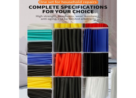 Heat Shrink Tube:800Pcs,45*1MM (200 black pieces), 45*1.5MM (150 red pieces), 45*2MM (125 yellow pieces), 45*2.5MM (70 green pieces), 45*3MM (50 black pieces), 45*3.5MM (40 blue pieces), 45*4MM (40 red pieces), 45*5MM (30 blue pieces), 45*6MM (20 blue pieces), 46*7MM (25 red pieces), 45*10MM (25 black pieces), 45*13MM (25 black pieces); Weight: 200g; Material: PE;